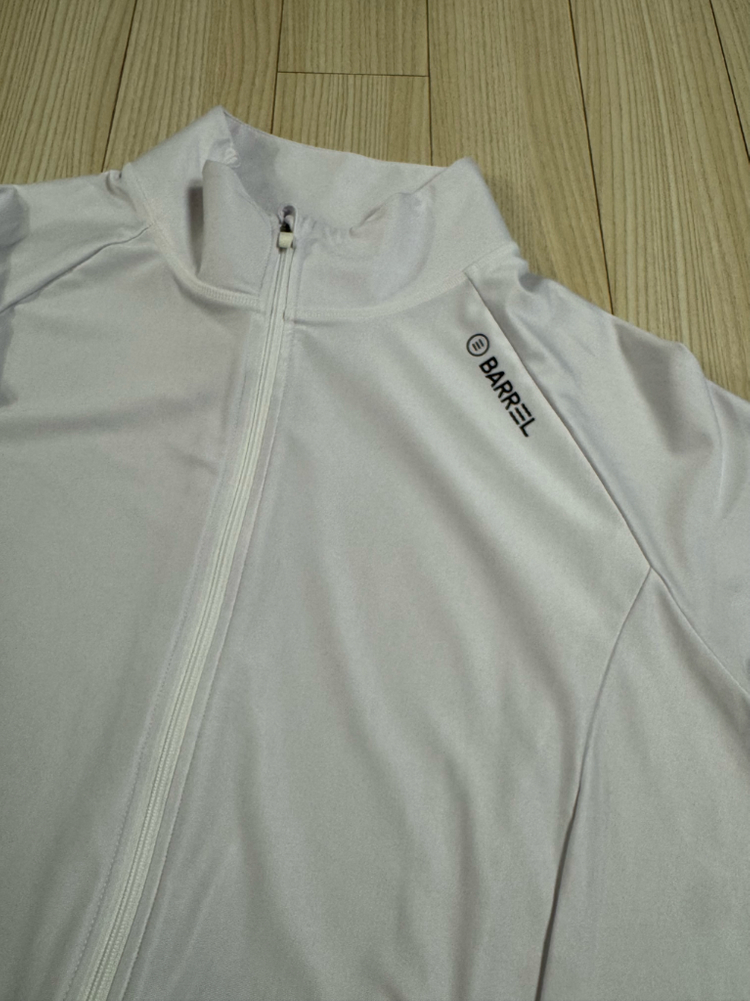 배럴 여성 래쉬가드 L 사이즈입니다. 77 분들이 편하게 맞으실거고 붙게 입으시려면 77반도 맞으실거에요. 신축성있구요 (아래 실측 참고해주세요) 2회 착용후 세탁해둔상태에요. 속에 비키니입고 걸치려고 큰사이즈 구매했더니 저한테 커서 내놉니다. 화이트 컬러입니다. 사진속 그림자 져서 때터보이는거같지만 상태 아주 최상이고, 하자 없이 깨끗합니다~ 흰색 바탕에 어깨 쪽에 배럴 로고가 프린팅 되어 있습니다. 단면 사이즈 총길이 69cm, 가슴 55.5cm 택배비는 제가 부담해서 택배 보내드릴게요
