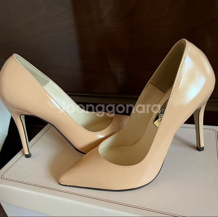 지니킴 골드라벨 핑크베이지 가죽 페이턴트 스틸레토힐 9cm 한번도 안신은 새제품 입니다 사이즈는 35로 220 입니다