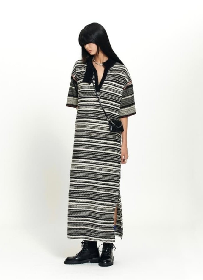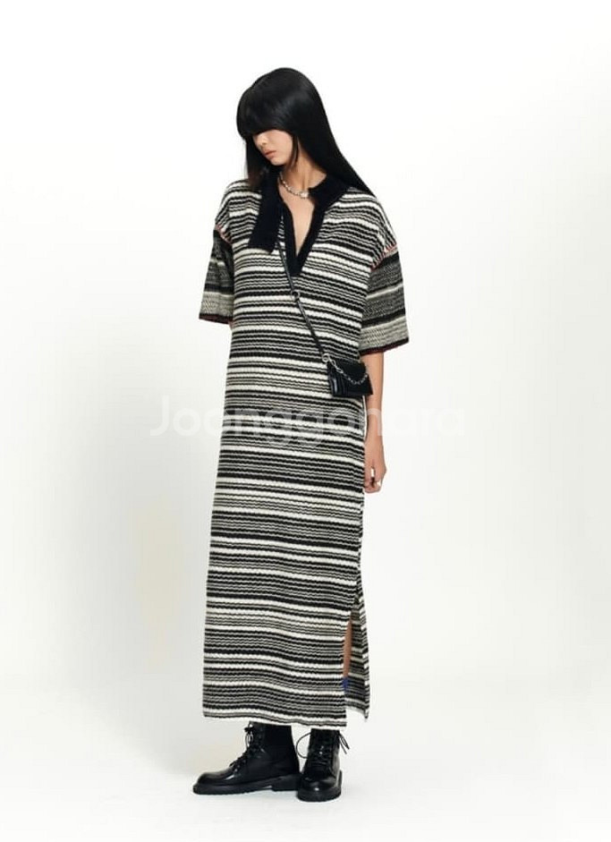 가슴 48 기장 133 더일마 스트라이프 드레스 원피스 Free사이즈입니다. 톤 다운된 색감이라 차분하면서도 세련된 느낌을 줍니다. 옆트임 디테일로 활동성을 더했습니다. 넥장식부분 애매해서 클립으로 고정해서 입어도 예뻐요 어울리는 클립 같이 보내드릴게요 깨끗한상태입니다