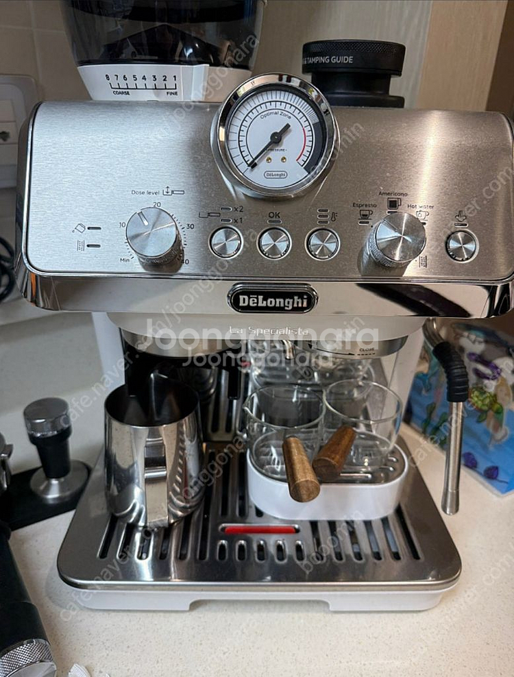 드롱기 라스페셜리스타 커피머신입니다 구성품 다 잇고 드롱기 넉박스 정품으로 6만원인가 주고 추가 구매햇어요 작년 2월에 구매해서 딱 두번 사용하고 내놓습니다 상태는 새거나 마찬가지에요 부피와 무게가 잇어 부산 직거래만 할께요 55만 네고는 안해요 ㅜ