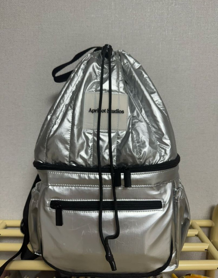 아프리콧스튜디오 캐스터네츠 백팩입니다 2025년07월에 더현대매장에서 구매했습니다 밑에는 보냉이 가능하고,가볍고 수납이 용이해서 편리하게 사용할 수 있습니다 사용감은 있지만 전체적으로 양호한 상태입니다