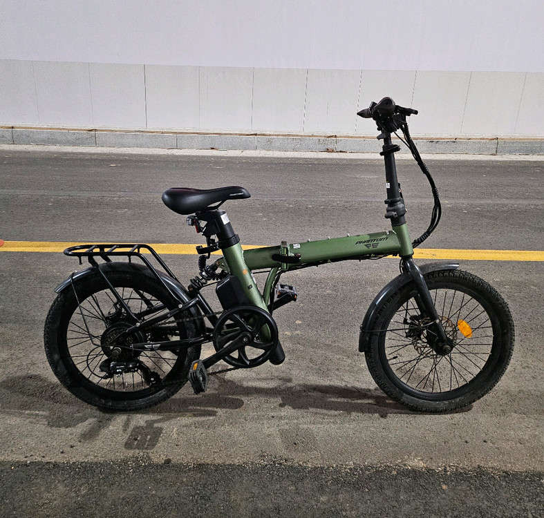 phantom fe 전기자전거 판매합니다~ 어머니를 위해 구매를 했는데 하루 집앞에서 연습해보시고는 무서워서 못타시겠다고 하여 주행도 못해보고 보관만 하는게 아까워 판매합니다! 예쁜 카키색이며, 앞에 디스플레이에 베터리 잔어량 스피드, 주행정보 등이 표시되어 눈으로 쉽게 확인할 수 있는 장점이 있어요~ 또한 핸들에 조명, 안장 브레이크등 위에 조명을 달아놓아서 안전하며, 기어 변속도 7단까지 됩니다~ 특히 충전은 자전거를 옮기지 않고 안장만 집에 가져가서 충전하며 되는 편리함이 있으며, 자전거가 7번 사진을 참고하시는 것처럼 접이식이라 보관에도 아주 용이하답니다~! 마지막으로 8~9번 사진을 참고하시는 것처럼 자전거 앞에 달고 다니거나, 가방처럼 들고 다닐 수 있는 바구니도 함께 드려요~ 구동 방식은 pas, 스로틀 방식입니다~^^ 직거래는 안양입니다~!