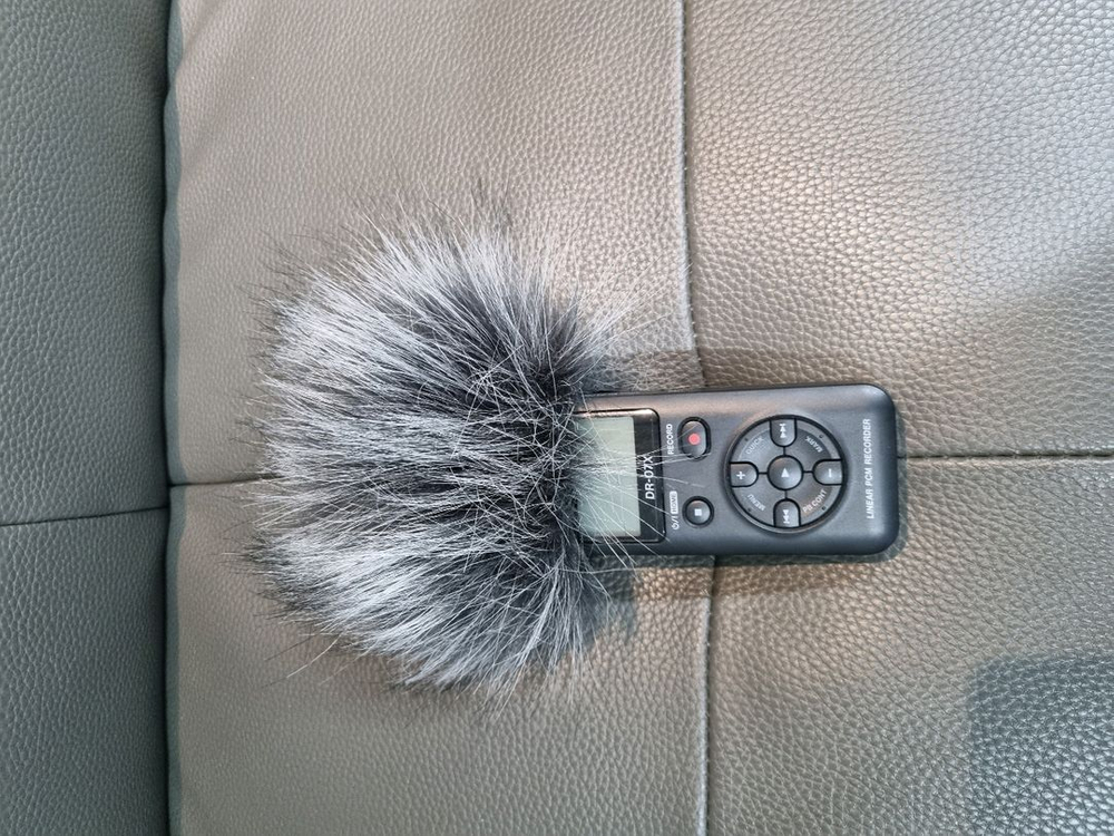 Tascam DR 07X 전문가용 디지털 녹음기예요. 윈드스크린도 함께 포함돼있어요