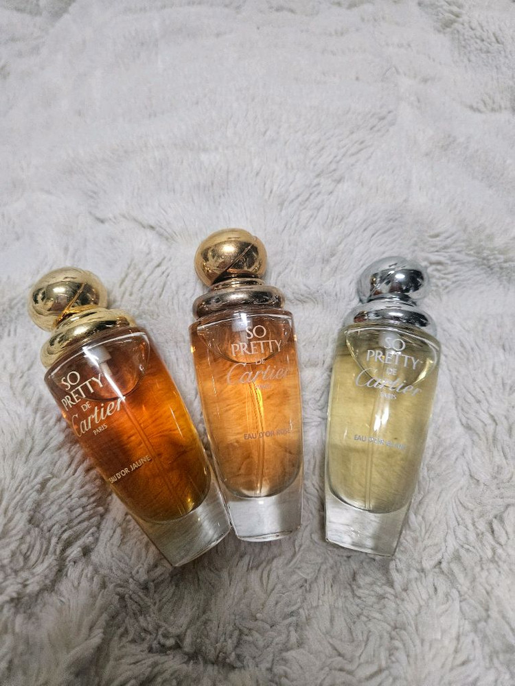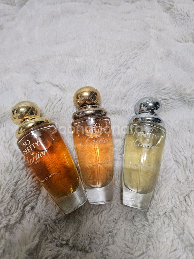 시향만 2~3회 해본상태 입니다. 3가지를 한번이 구매하시는게 향수 애호가 님께 좋을것 같아서 일괄로만 판매합니다. 30ml ×3 향기 계열: 싱싱한 플로랄 계통으로 장미와 붓꽃 향이 어우러져 우아하고 품위 있는 느낌을 줍니다. 디자인: 까르띠에의 클래식한 스타일을 현대적으로 해석한 병 디자인이 특징이며, 뚜껑은 꽃잎이나 편물을 꼬아 놓은 듯한 모양에 까르띠에의 상징인 '3개의 반지' 디자인이 포함되어 있습니다. 희귀성: 현재는 시중에서 찾기 힘든 빈티지/희귀 향수로 분류되어 수집가들 사이에서 인기가 높습니다.