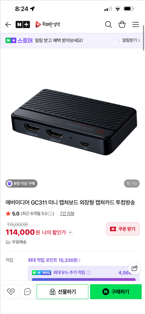 에버미디어 GC311 미니 캡쳐보드 외장형 캡쳐카드입니다! - 사용은 한달도 안했습니다. - 직거래 현장네고는 불가능입니다 - 편하게 문의 주세요 - 구매는 작년 3월에 했습니다