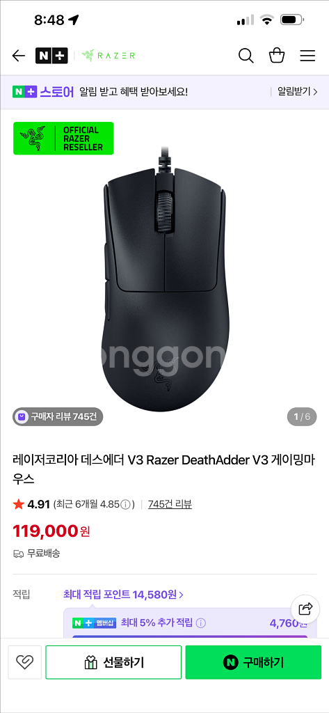 레이저 데스에더 V3 유선 게이밍 마우스입니다. - 사용은 6개월정도 했습니다 - 하자없습니다 - 문의는 편하게 주세요