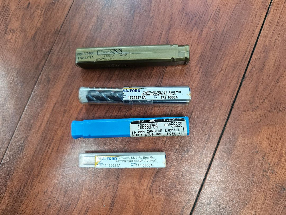 미국 M.A.FORD 2날 3날 엔드밀 일괄 팝니다. 전부 새상품 입니다. 1. 3날 코팅 평엔드밀 10*25*70*R0.5 수량:1 2. 3날 코팅 평엔드밀 10*25*70 수량:1 3. 2날 코팅 볼엔드밀 10*14*51 수량:1 구매하신 분께 3날 6파이 평 엔드밀 1개 같이 보내드립니다.