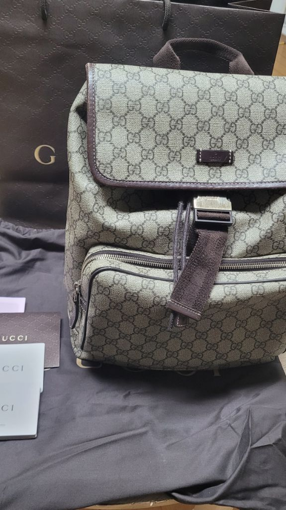 구찌 GG슈프림 백팩입니다 백화점 정발상품입니다(영수증 보관중) 구입시 모든 구성품 보유 전반적으로 상태 좋습니다. 재질 특성상 나타나는 밑쪽쓸림은 보입니다. 사진 참고 부탁드려요 사진이 실물을 따라가지 못하네요 연락주시고 가격제안 환영합니다