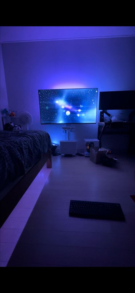 필립스 Hue 그라디언트 엠비언트 스트립 2m입니다 사진에 티비뒤에부착한겁니다 침대밑은 라이트스트립입니다 박스빼고 구성품다있고 거의 사용안했습니다 블루투스나 휴브릿지 로 이용가능합니다