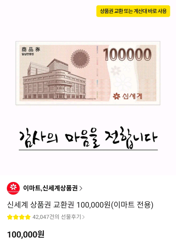신세계 상품권 10만원권 이마트교환 모바일 상품권 신세계 모바일