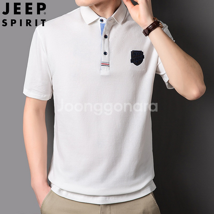 깔끔한 화이트 컬러의 남성용 반팔 폴로셔츠예요. 가슴 부분에 네이비 로고 패치가 포인트로 들어가 있어서 세련된 느낌이 나네요. 사이즈표도 함께 드려요! 사이즈 XL