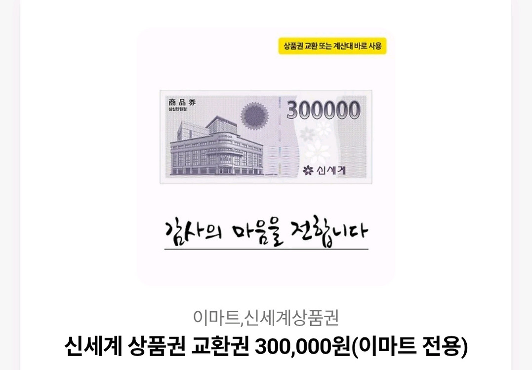 백화점에서 사용 가능한 30만원 상품권이에요. 모바일 거래하고자합니다(이체)