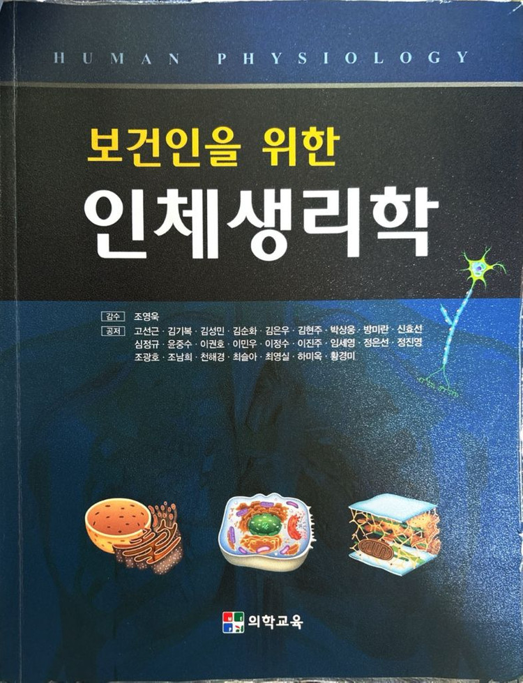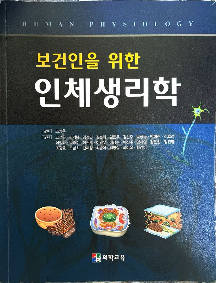 의학교육에서 출간된 인체생리학 교재입니다. 내부 페이지도 깨끗하고 상태 양호해요. 의대생이나 관련 전공자분들께 유용할 것 같아요.