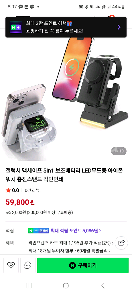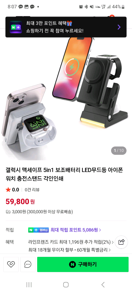 맥세이프 호환되는 5in1 보조배터리예요. 스마트폰, 아이폰, 애플워치, 스포츠밴드까지 한 번에 충전할 수 있어서 정말 편리해요. 박스 포장 상태로 새 제품 같아 보여요!