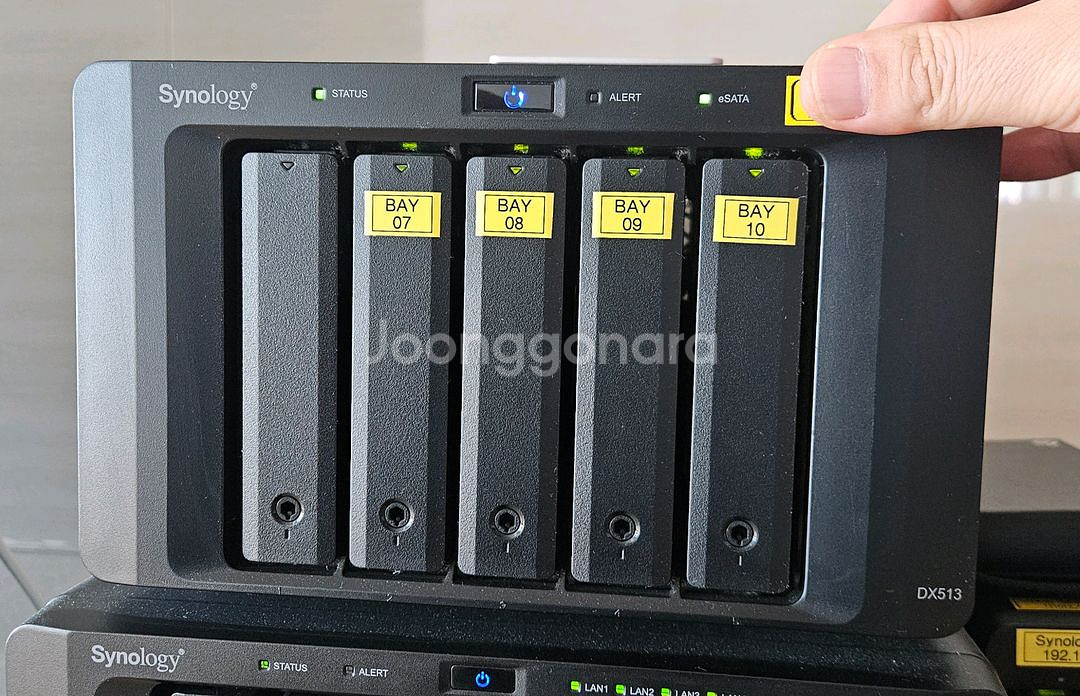 5베이 NAS 확장배의 DX512 입니다. 이번에 나스를 기변 및 업그레이드 하게 되어 현재 사용 중인 베일을 판매하고자 올립니다. 사용감은 있지만 나스 특성상 만지거나 손에 쥐고 사용하는 품목이 아니라서 일반적인 생활 기스는 있습니다. 지금도 사용 중인 현역으로 5개 배이 모두 이상 없이 작동하고 있습니다.