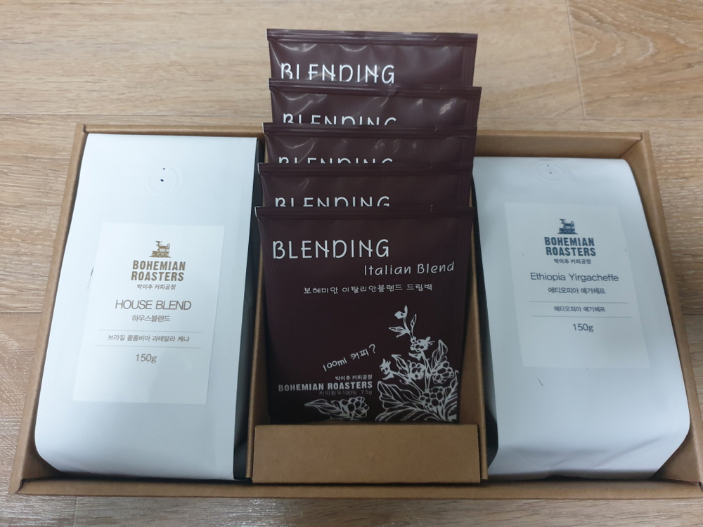 ▶채팅주세요 박이추 커피공장 보헤미안 커피 유나이트 로스터리 선물세트 미개봉 새제품 한세트(한박스) 구성 1. 하우스블렌드 150g (브라질 콜롬비아 과테말라 케냐) (2026.12.23까지) 2. 에티오피아 예가체프 150g (2026.12.23까지) 3. 보헤미안 이탈리안블렌드 드립백 7.5g x 5개 (2026.12.09까지) 한세트 4만원 하는 제품입니다. 직거래시 2만 3천원 택배시 3500원, 편의점 반값택배시 2500원 추가되요