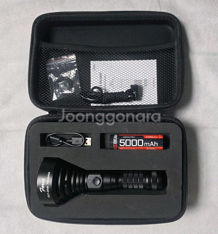 개인정보(거래정보)를 주고받는 행위는 사기에 노출될 수 있으므로 즉시 중고나라로 신고해 주세요엘프다이브 PRO 6000 다이빙랜턴 해루질랜턴 수중랜턴 미사용 신품 자체충전 21700 5000mAh 충전지와 충전케이블 포함 (별도의 충전기가 필요치 않습니다) 사용설명서 핸드스트랩 여분 O링 휴대용 파우치