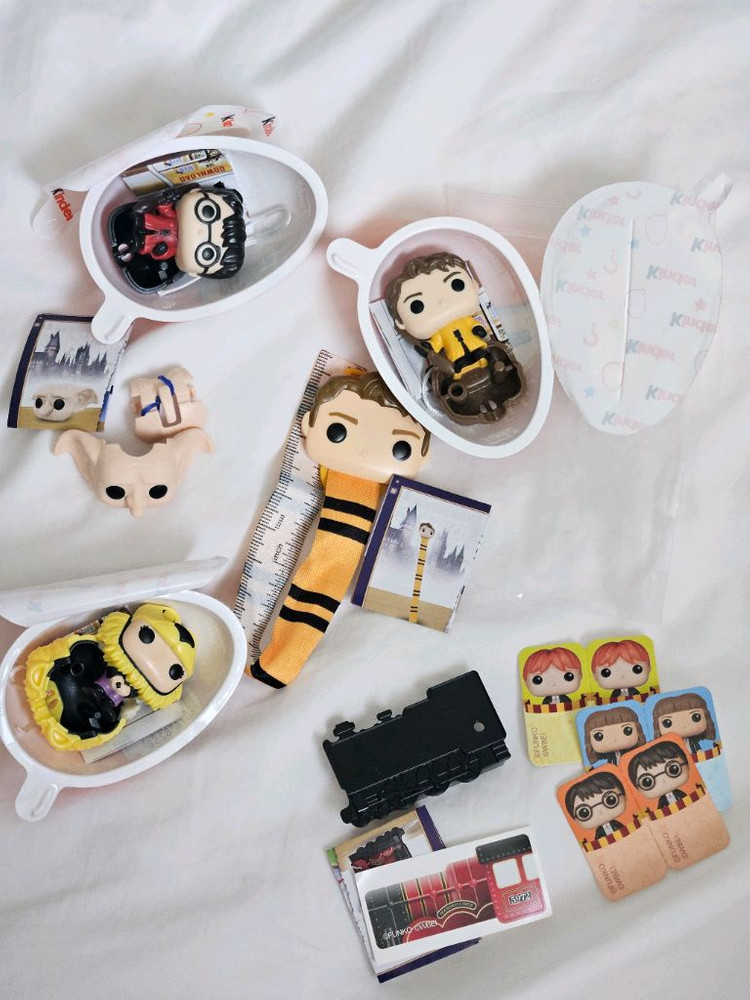 킨더조이 일괄 판매합니다. 문의사항은 채팅으로 연락주세요 [배송] gs25 편의점택배 3,000 gs25 반값택배 2,000 ㅡ구성 ㅡ 1.기차 2.도비 3.세드릭 줄자 퀴디치버전) 4.해리포터 (머리카락 공뎀?) 5.세드릭( 이마쪽 점?) 6.루나