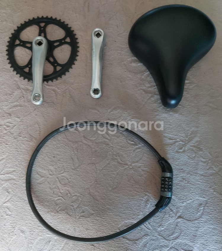 안녕하세요.. 보관중인 자전거 크랭크 세트 및 쿠션 안장, 자물쇠 일괄 처분합니다. 메인사진 그대로 발송하여 보내드립니다. 1. 크랭크 세트 >> 예전에 삼천리 20인치 자전거에서 분리해놓은 제품입니다. >> 몇 T이며, 제품 정보는 실사진으로 대체 하오니 잘 확인해주세요. 설명 못드립니다. >> 사용감/세월감 실사진 잘 확인해주세요. 2. 쿠션 안장 >> 거의 미사용 보관품입니다. (싯포스트와 연결하는 마운트는 같이 드리지 못합니다. 제가 사용중입니다.) 3. 자물쇠 >> 세월감, 사용감 많습니다. 그냥 같이 처분합니다. (외부에 거치시 사용해서 사용감, 세월감 있습니다. 사진 잘 확인해주세요.) 비밀번호는 발송시 기재하여 발송하겠습니다. 메인사진 그대로 포장하여 발송해드립니다. 반품/환불 X