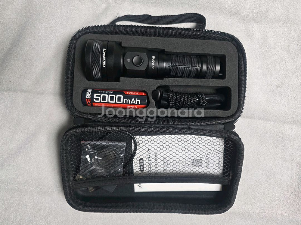 개인정보(거래정보)를 주고받는 행위는 사기에 노출될 수 있으므로 즉시 중고나라로 신고해 주세요엘프다이브 PRO2500GTS 다이빙랜턴 해루질랜턴 수중랜턴 미사용 신품 자체충전 21700 5000mAh 충전지 충전케이블 포함 (별도 충전기가 필요치 않습니다) 사용설명서 핸드스트랩 여분 O링 휴대용 파우치
