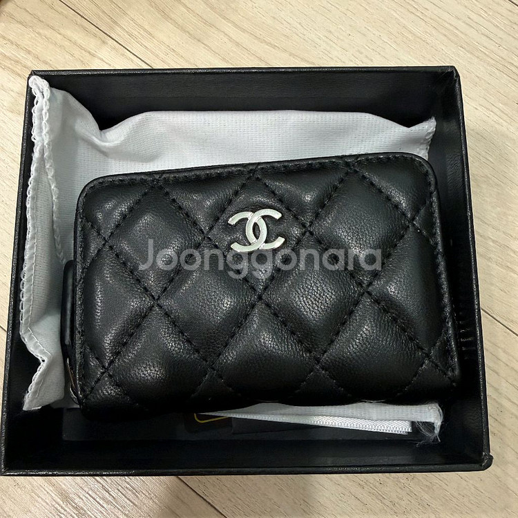 샤넬 램스킨 은장 지퍼돌이 카드지갑 풀박스 새상품