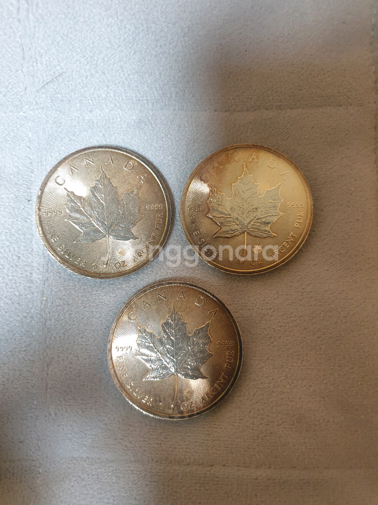메이플 캐나다 법정화폐은화 순도 999.9% 개당 31.1g 18만원 해서 3개 합 93.3g 54만원에 싸게팝니다 실버바 100g 60만원 넘게 팔리고있습니다 일반택배 3500 gs25 cu반택 2000