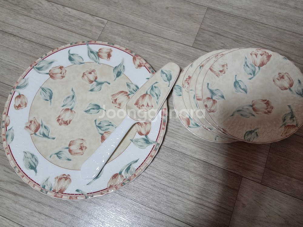 행남사 케이크 접시입니다. 몇년전에 제주 행남 대리점에서 7만원에 구입한후 보관만 했습니다. 케이크서버 1개 대접시 1장 (지름28cm) 소접시 5장 (지름16cm) 구성입니다.... 안심결제 하시면됩니다. 에누리 문의는 답변드리지 않습니다 환불교환반품 불가. 신중구매해주세요.