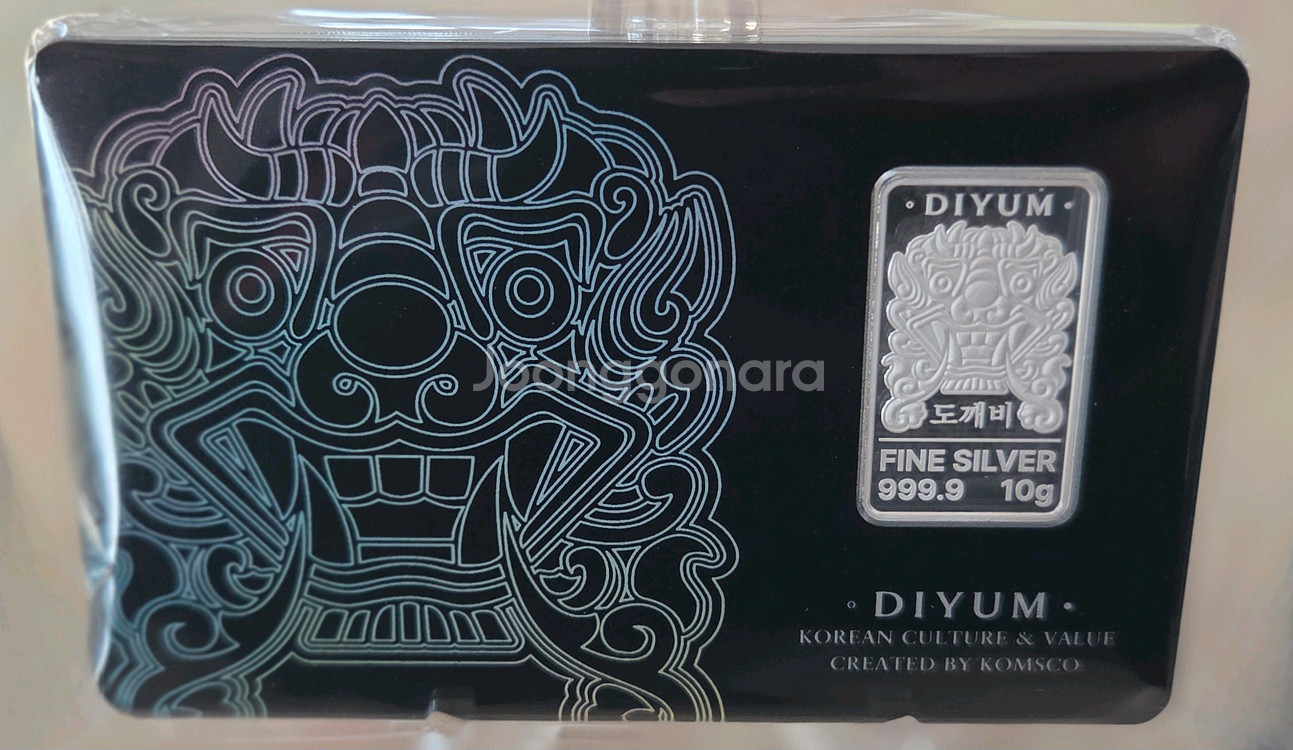 DIYUM에서 제작한 도깨비 디자인의 실버바입니다 - 순도 99.99%의 순은 10g으로 제작되었습니다 - 한국조폐공사에서 제작하여 소장 가치가 높습니다 - 독특한 디자인으로 수집용으로 좋습니다
