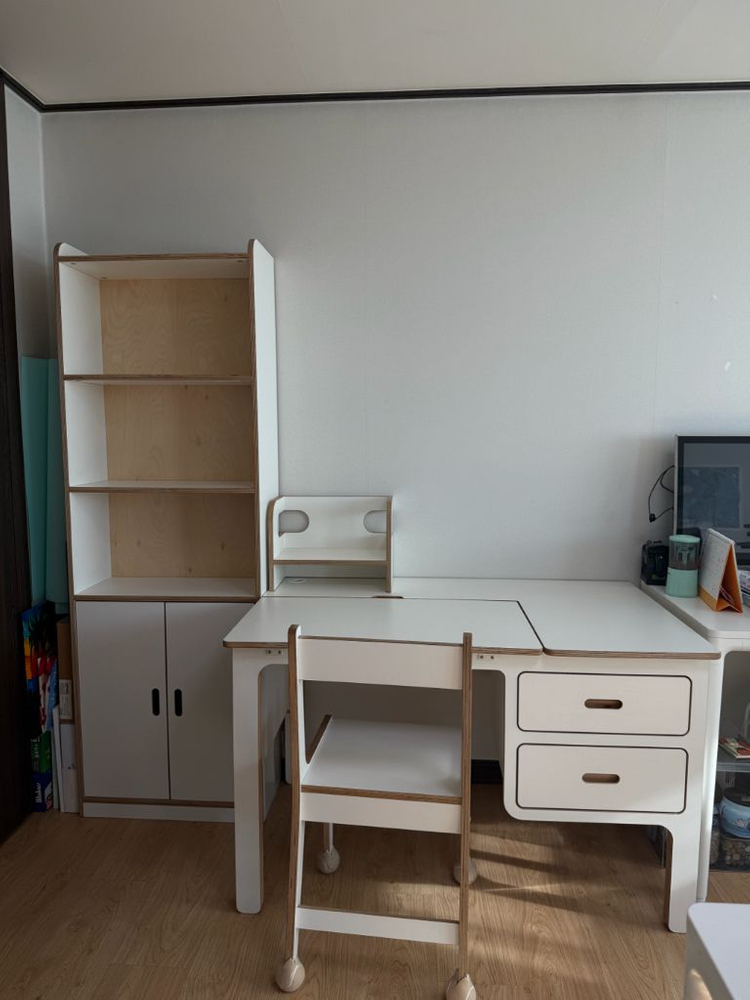 우드래빗 마이토 시리즈입니다. 구매한지는 3년정도 되었지만 실사용이 별로 없어 아주 깨끗합니다. 자세한 사이즈는 홈페이지 확인 부탁드립니다. 배송비 별도입니다 책상,의자, 작은 책꽂이, 각도조절되는 책상입니다. - 책상세트 45만 https://m.woodrabbit.co.kr/product/maito-desk-1200/613/category/45/display/1/ - 책장 30만 https://m.woodrabbit.co.kr/product/maito-bookshelf-wh1800/795/category/43/display/1/ -옷장 60만원 옷장은 기존제품에서 형태 변경하여 옷걸이장을 줄이고 서랍장을 추가해서 주문한 옷장입니다. 115만원에 구매하였으면 옷만 넣어서 사용한거라 사용감 전혀없고 깨끗합니다. 가로 815mm 높이2100mm 서랍크기는 홈페이지 확인 부탁드립니다. https://m.woodrabbit.co.kr/product/2026%EB%85%84%ED%98%95-%EC%8A%A4%ED%8E%99-%EC%97%85%EA%B7%B8%EB%A0%88%EC%9D%B4%EB%93%9C-maito-closet-1800/1126/category/46/display/1/