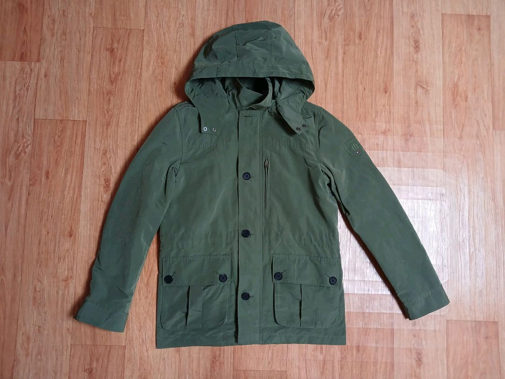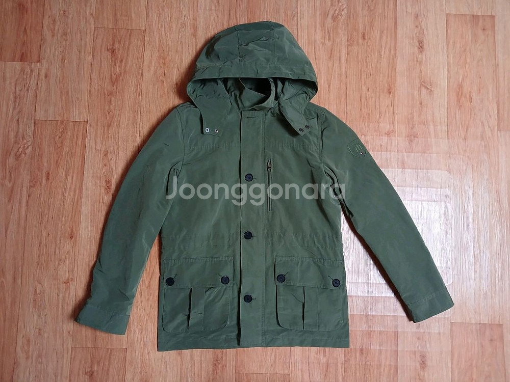 타미힐피거(정품) 남성 후드 자켓 (카키) (95) (상태 최상급) (부분 소가죽) (후드 탈부착) (컬러 예쁘고 깨끗하고 좋아요)