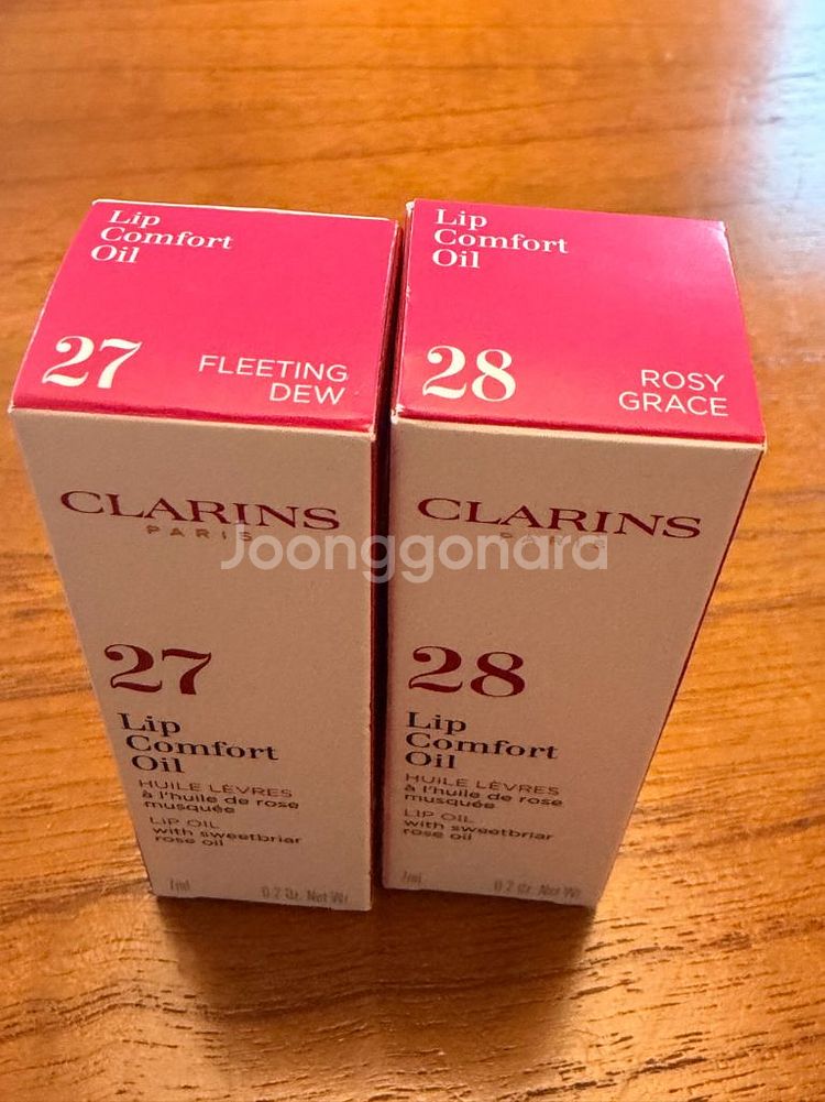 ![[새상품]클라랑스 립 컴퍼트 오일 2종 (플리팅 듀, 로지 그레이스)--1](https://img2.joongna.com/media/original/2026/02/25/17720085837683vC_whQFm.jpg?impolicy=resize)