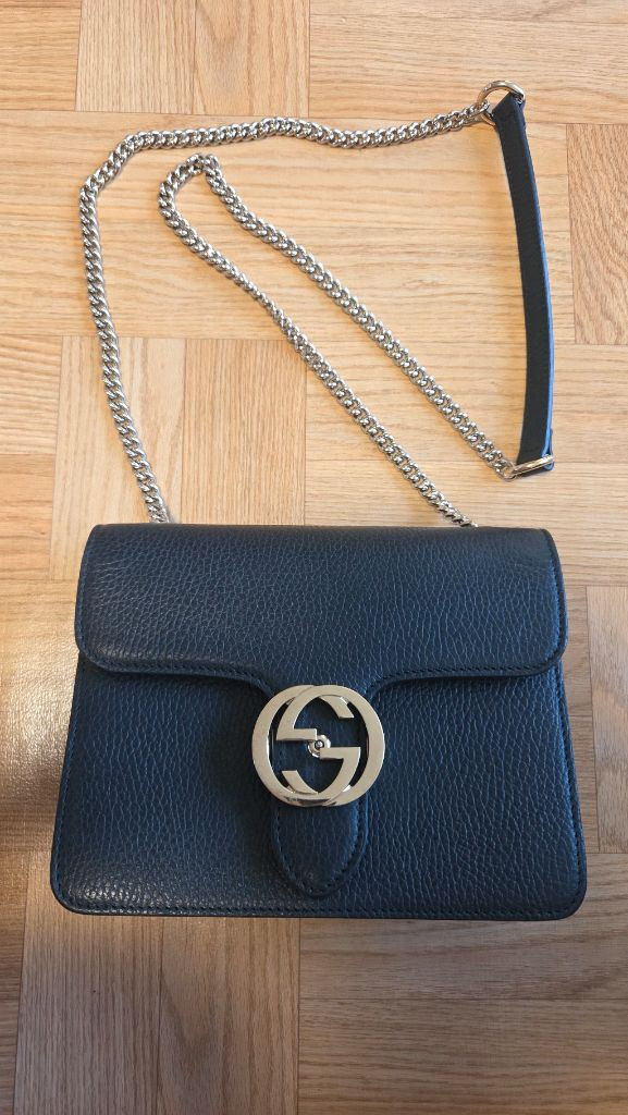 구찌 인터로킹 GG 체인백 스몰 사이즈 블랙 색상입니다. 체인 스트랩으로 되어있고, 가죽 소재입니다 데일리백으로 좋은 사이즈입니다. 크로스와 숄더로 모두 사용 가능합니다. 금장 부분 스크래치와 안쪽 립스틱자국이 있는것 빼고는 전체적으로 깨끗합니다. 5년전쯤 기장 아울렛에서 구입했고 더스트백은 있어요. 택배비 포함 330,000원 네고 불가!!! 네고 문의는 답변 안드려요