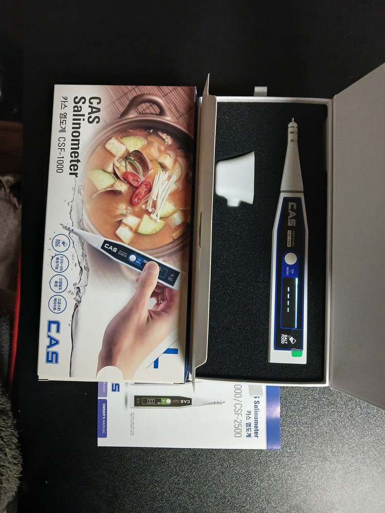 CAS 카스 염도계 새제품이에요. 박스와 구성품이 모두 깔끔하게 보관되어 있고, 미사용 상태입니다. 전문적인 염분 측정이 필요한 분께 추천해요! 반품 불가로 저렴하게 판매합니다
