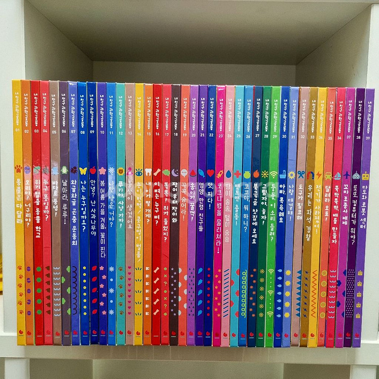 구성 내친구 과학공룡 개정판 : 본권 52권, 별책 1권(알쏭달쏭 신기한 착시 놀이책), 과학놀이 세트 40종(권말 부록 스티커활동 28종, 북아트 종이공작활동 12종), 과학실험 세트 9종(곤충 확대경, 공 띄우기, 허파모형 만들기, 색깔 그림자 만들기, 소리가 보이는 컵, 자석놀이, 로켓 풍선 만들기, 인체 앞치마, 착시 팽이) 구매 후 거의 손대지 않은 새책 컨디션(뒷면 활동지 미사용)이며, 부록 거의 다 있습니다. 구매 직후 북아트 종이공작활동 3개만 사용했어요(12개 남음) 사진에서 보시다시피 빛바램도 없어요