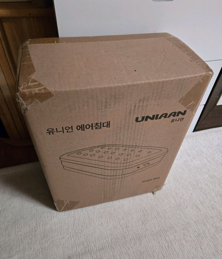 유니언에어침대 싱글 미사용 제품이에요. 박스 포장 그대로 미개봉 상태입니다.