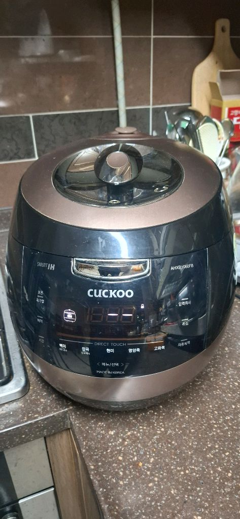 쿠쿠 하세요 ~~ 깨끗합니다 밥맛있게 잘됩니다 IH압력밥솥 10인용이에요. 사용감은 있지만 정상 작동하며, 대가족이나 많은 양의 밥을 지어야 할 때 유용해요. 깔끔하게 관리해서 상태 양호합니다. 구입가30만원