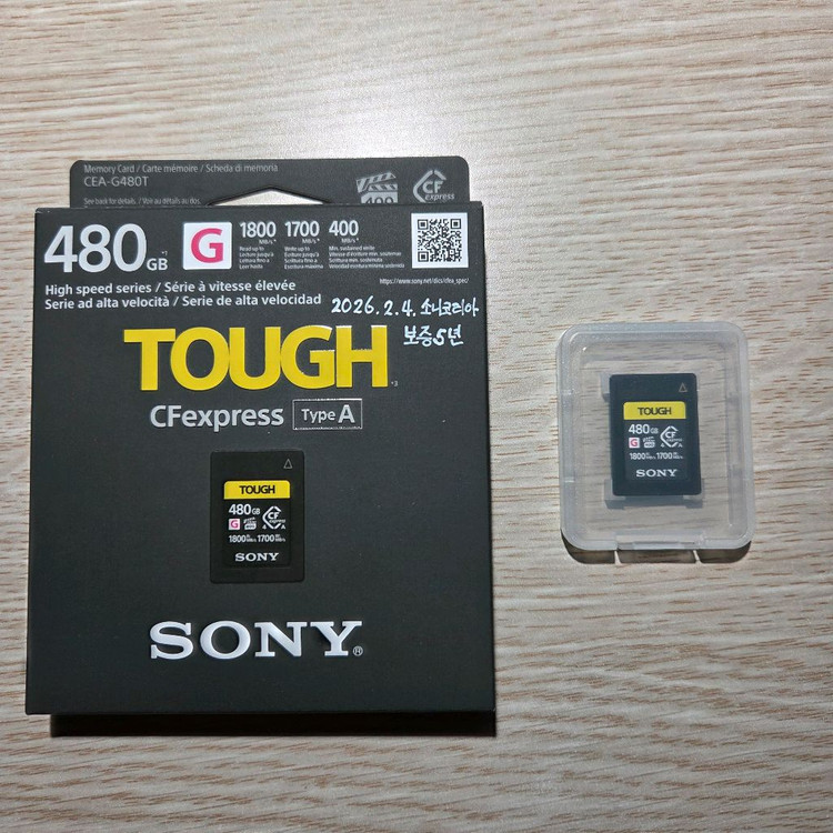 소니 CEA-G480T 팝니다. CF express Type A 제품입니다. 2026년 2월 4일 구매 영수증 있습니다. 무리하게 웃돈 주고 구매한 거라 판매가격 양해 부탁드립니다. 제가 구입한 금액 그대로 내어놓습니다. 디스크인포 상 사용량 거의 없다 보시면 됩니다. 케이스 및 상자 모두 있습니다.