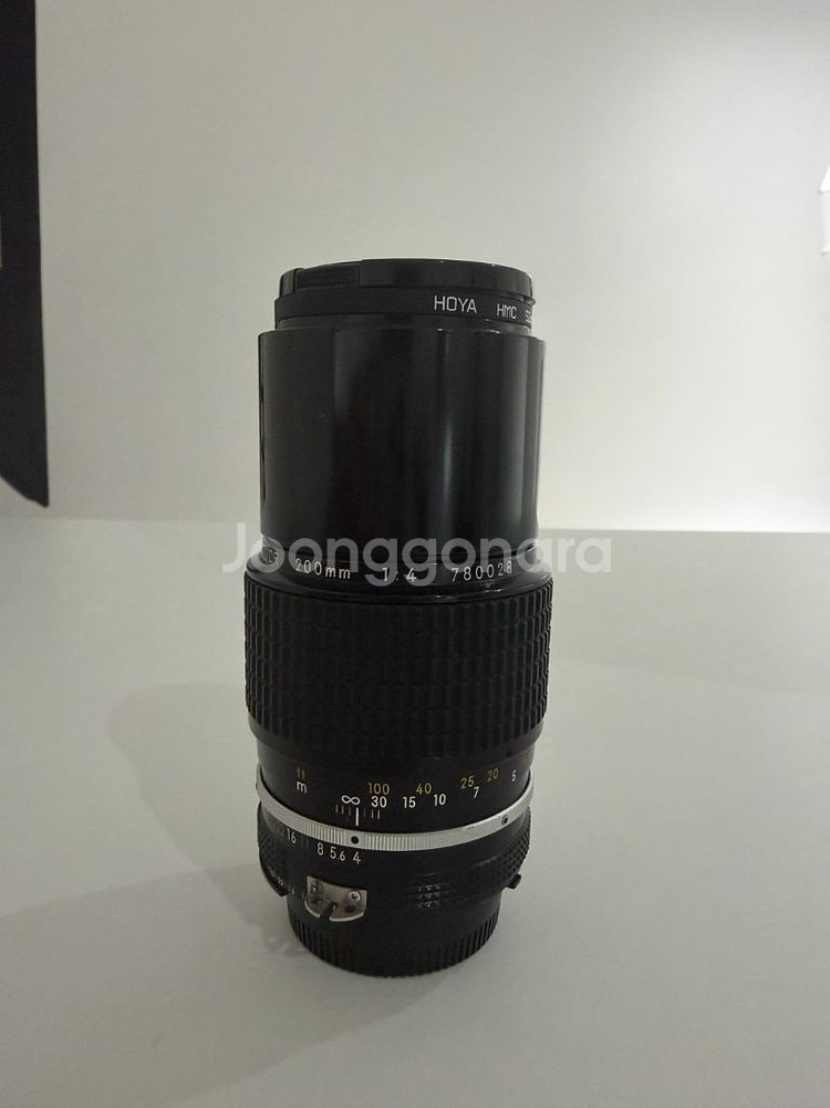 니콘 F마운트 수동 망원렌즈 판매합니다. NIKKOR 200mm F4 AI 버전입니다. 약간의 스크레치가 있지만 이정도 상태면 굉장히 좋습니다!!!! 렌즈부분 이상없습니다~ • 조리개 / 초점링 정상 작동 • 외관 상태 양호 • HOYA 필터 포함