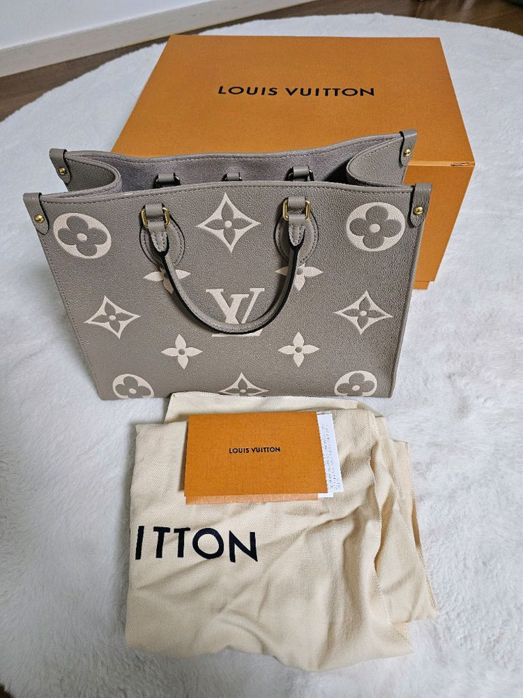 루이비통 온더고 MM 가방 크렘 색상 2020년 10월 3일 부산롯데백화점본점에서구매 가방이 많아서 실착 많지 않아 상태 매우 깨끗합니다. - 박스포함 - 더스트백포함 -구매영수증포함 -종이가방포함