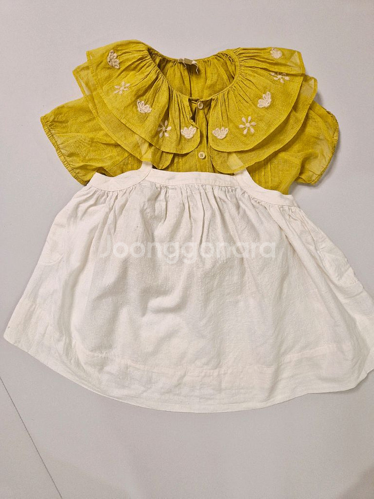 아침에 급하게 찍고 나오느라 구김이 좀 있어요;; 둘다 넘 유명한 구구구상 입니다 아폴리나는 23ss 오간자이고 보시다시피 공홈 직배로 사서 1회착이며 오간자이다보니 조금 크게 사니 가디건처럼 입어지고 좋았어요 수어플룸 네추럴 피나는 귀둥이때 20만원 중후반대 구매한것 같습니다. 아껴입고 1회착이라 상태 너무 좋아요 😍 - 사이즈: 5y, 7-9y, ( 5-7y 사이즈로 생각하심 좋아요) - 브랜드: 아폴리나 - 색상: 옐로우, 화이트 - 소재: 면 100% 빈티지 스타일로 예뻐요~ 제 기준 그냥 피나 하나 가격에 보내는 거라 매너거래 부탁드립니다 🙏