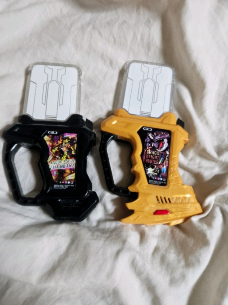 가면라이더 이그제이드 드라고 나이트 헌터 Z와 아슬아슬 칼싸움 판매합니다 상태 좋습니다 드라고나이트헌터Z는 빛과 소리 모두 잘나오지만 아슬아슬 칼싸움은 소리가 안납니다 건전지 빠져서 나갑니다