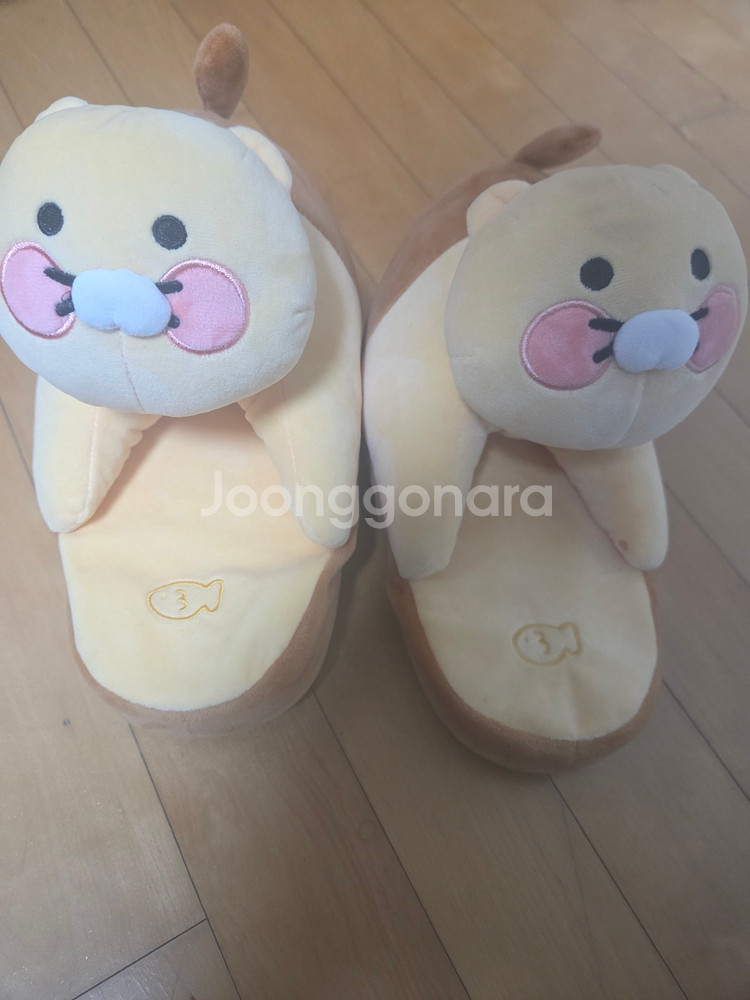 귀여운 캐릭터 디자인의 슬리퍼예요. 베이지색 바탕에 핑크 포인트가 깔끔하고 예쁘네요. 상태 양호한 중고 제품입니다. 실 착용 1번 이후로 없습니다. 착불 시 20,000원입니다.