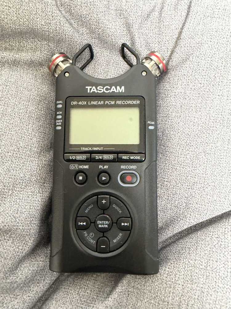 Tascam DR-40X 리니어 PCM 레코더입니다. 🥕실사용 3회 🥕기스 없습니다. 🥕필름 붙어 있습니다! USB 케이블은 애초에 없었습니다..ㅠㅠ 5핀입니다! 참고하세용~ 작동 매우 잘하고, 수음력 진짜 좋습니다. 유명 asmr 유튜버 분들도 해당 타스캠 많이 씁니다. 저는.. 타스캠은 손이 잘 안가서 판매합니다. 4채널 녹음을 지원하여 다양한 환경에서 사용하기 좋고, 휴대성이 좋습니다. 기능과 성능 등은 유튜브에서 더 자세히 다루니 유튜브 영상 참고해주세요. 🚫중고나라 채팅과 중고나라의 결제 방법을 따라 판매합니다. 텍스트로든 사진으로든 전화번호 물어보는 채팅은 구매의사 밝히셔도 답장 안하겠습니다. 안전거래 합시다.