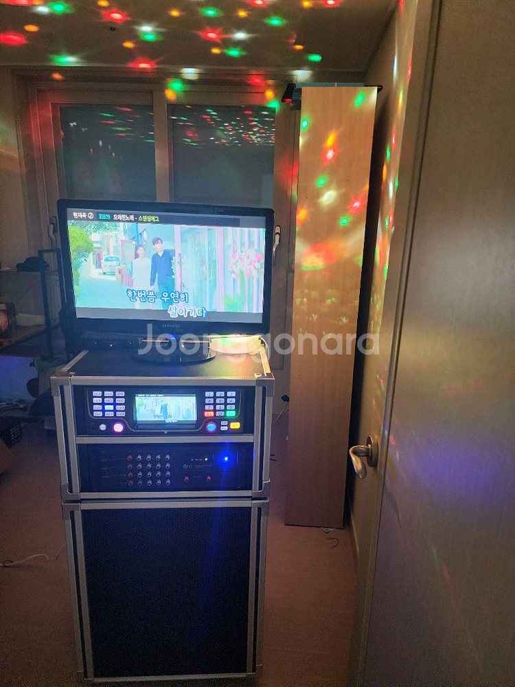 가정용 이동식노래방 세트 (전국 무료방문설치) 010 2306 8468 세트구성품 1.이동식케이스(스피커포함)신품 2. 태진반주기 (중고) 3. 2채널엠프 (중고) 4. 모니터(22인치) :10만별도 5. 유선마이크줄세트2개(신품) 6. 조명 책자 리모콘 탬버린 마이크덮개(신품) 7. 연결선 및 멀티탭(신품)