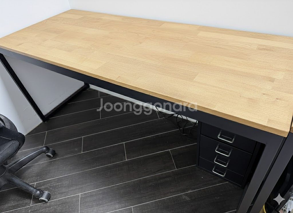 국내 제작 엘더 원목 테이블/작업대 판매합니다 책상으로 사용 가능해요 사이즈 : 1600 x 800 소재 : 엘더 원목(천연 오일 마감) + 블랙 스틸 다리 수량 : 5개 (각 5만원) 사용감은 좀 있지만 튼튼하고 좋은 테이블 입니다 길이가 있는데도 프레임이 워낙 견고해 쳐짐 같은거 없어요 실용적이고 모던한 디자인으로 홈오피스나 사무실용으로 좋아요. 사무실에서 맞춤 제작해서 사용하던 건데 사무실 이전으로 공간이 부족해서 아쉽게 판매해요 짝꿍으로 쓰던 이케아 서랍장도 팝니다 블랙 컬러 5개 (각 5천원) *책상 구매 하시는 분은 세트 맞춰 그냥 드려요 개별 구매도 가능하고, 여러개 구매하시면 할인도 가능해요