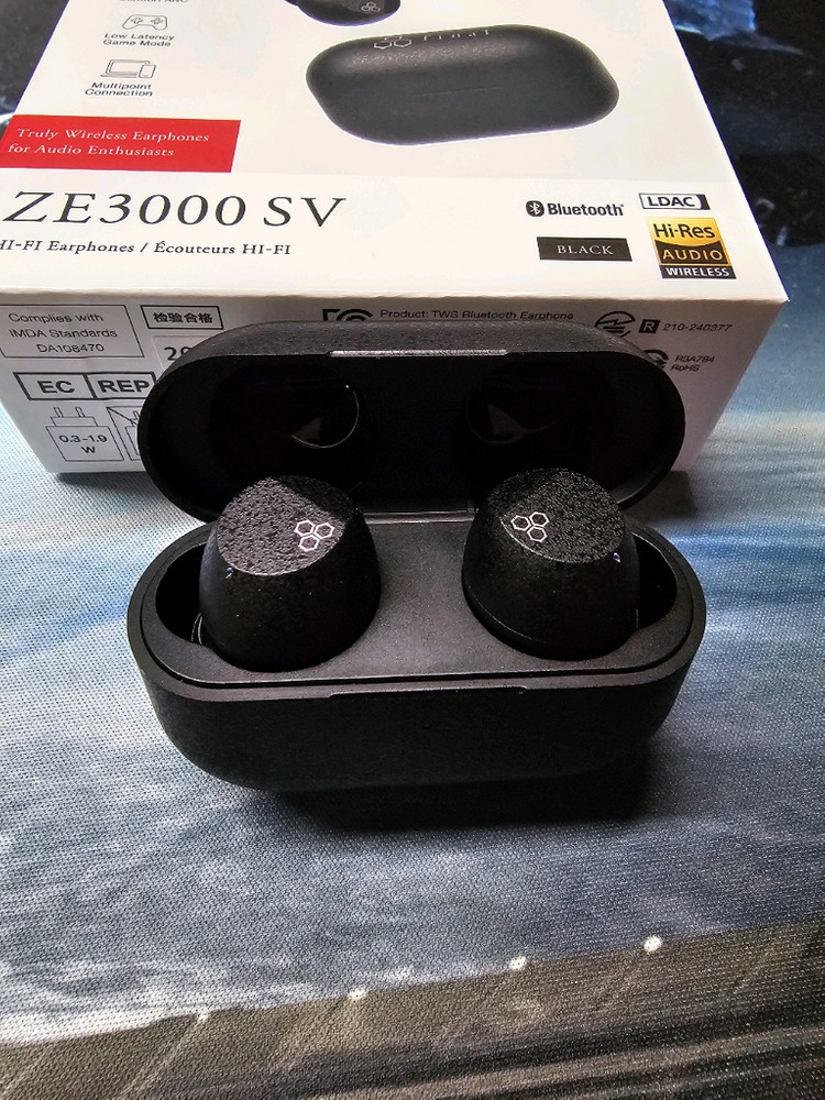 Final ZE3000 SV 블랙 색상 무선 이어폰입니다 박스, 설명서 등 풀 구성품입니다 https://naver.me/G4dAQ1bP 상품 설명 페이지입니다. -2월 19일 구매하여 2월23일 배송받았구 상품 개봉 및 테스트 해보았습니다. 이미 음향기기가 많아서 총30분쯤 착용해보고 판매하려고 합니다. 아무런 사용감이 없는 그냥 새상품입니다. -일본의 음향 명가 final사의 제품으로 음질이 전체적으로 잘깎여 있고 제가 치찰음 싫어하는데 고음역대 부분 전혀 귀가 아프지 않고 편안했습니다. final사의 제품을 입문하고 싶은데 편의성도 챙기고 싶은 분들 한테 강추합니다. -ze3000제품에서 업그레이드된 제품이라 SV(smooth vocal)을 붙인 모델이라 합니다. 확실히 보컬을 들을 때 굉장히 맛있고 편안하더라구요. 특이하고 고급스러운 디자인이라 10만원대 제품으로는 안보입니다! *특징* -ldac 지원 -노이즈캔슬링 -멀티페어링 -모바일 앱 지원 -무선충전 미지원 -c타입 충전 -이어팁 5쌍 포함 -1년 A/S 보장
