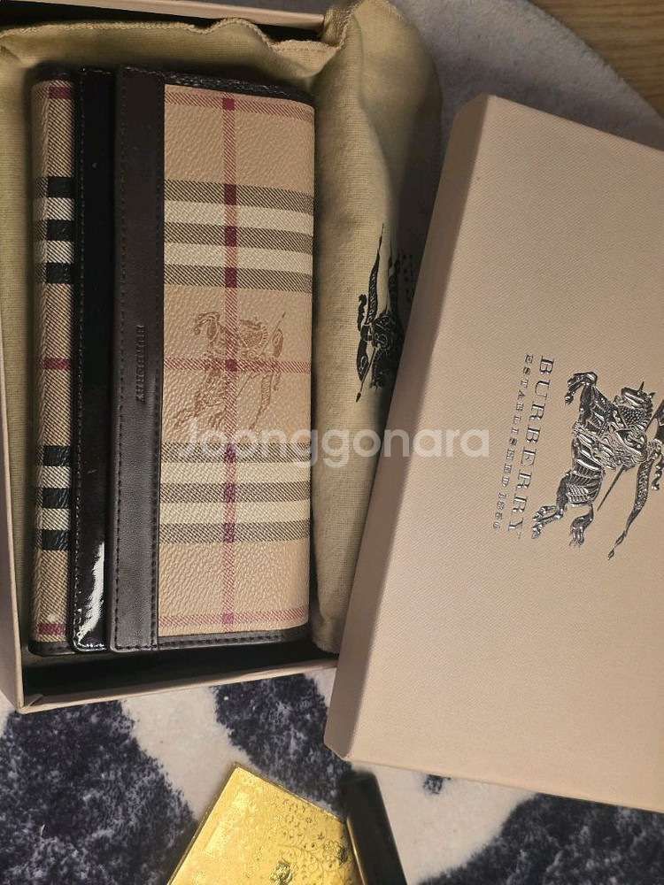 정품 버버리 클래실 장지갑이에요. 박스와 더스트백 포함된 완전 세트로 상태도 깔끔합니다. 클래식한 디자인으로 오래 사용하기 좋아요.