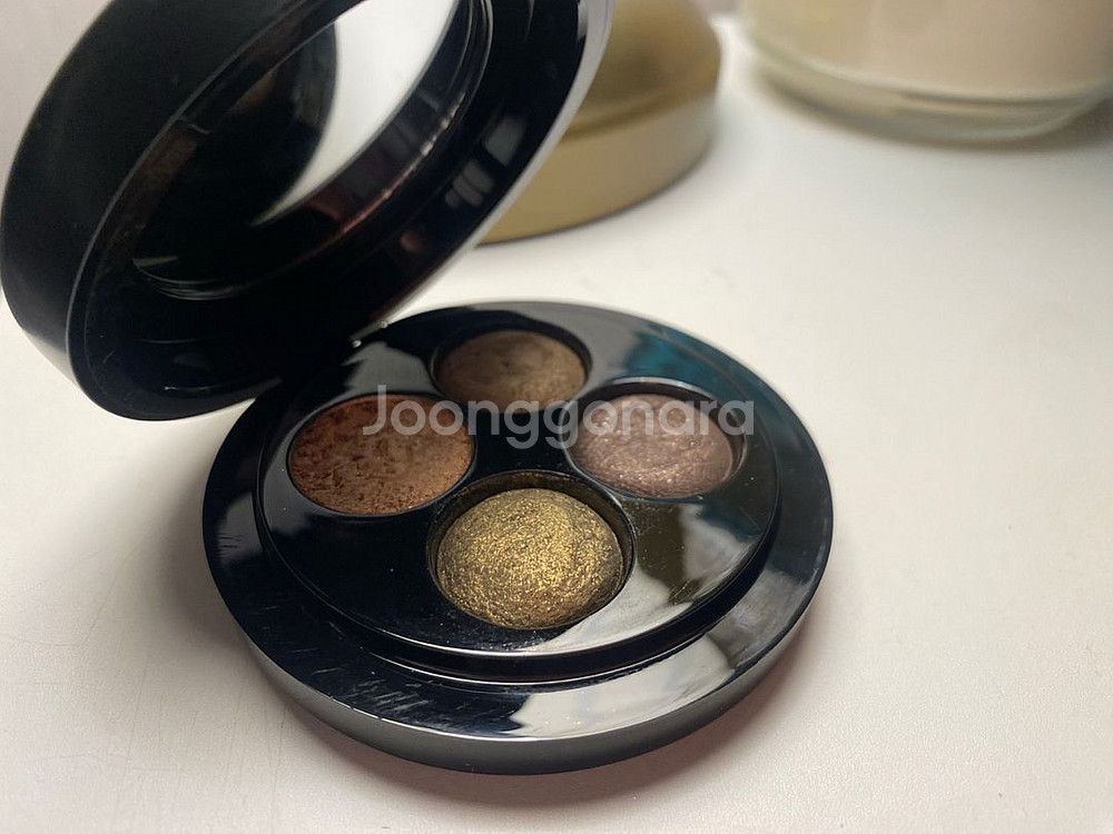맥(MAC)의 고급스러운 카키/골드 조합 4구 팔레트 판매 은은한 골드부터 깊이 있는 카키, 브라운 계열로 구성되어 가을 워머분들이나 스모키 메이크업 좋아하시는 분들께 딱입니다. 단종된 컬러라 구하기 어려운 제품입니다. test용으로 쓰실분 (사진참조) 생활의기스 및 가루날림 있음. 기초도 색조가 잘 안지워지는 강점브랜드인듯요. 현재 가격으로만 거래 가능한 점 양해 부탁드립니다.