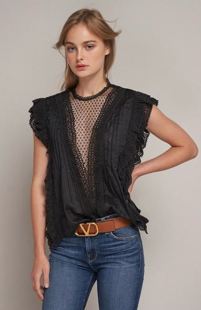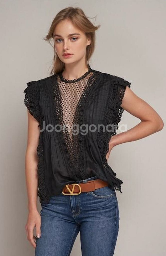 이자벨마랑 roya 블랙 블라우스입니다. 독특한 네트 디자인과 섬세한 레이스 장식이 포인트입니다. 36사이즈이고 넉넉하게 나온 편입니다. 블랙 상의가 잘 안 어울려 몇 번 안 입어 상태 좋습니다.