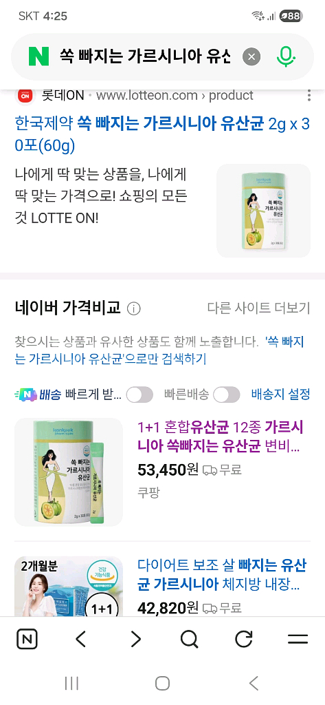 한국제약 쏙 빠지는 가르시니아 유산균 2g30포 3통